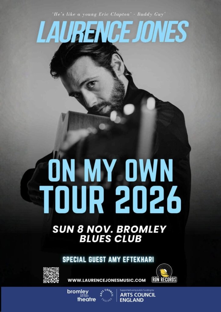 Rockin’ Roots Events is proud to present a special evening with the multi-award-winning Laurence Jones at Bromley Blues Club, with very special guest support from Amy Eftekhari.